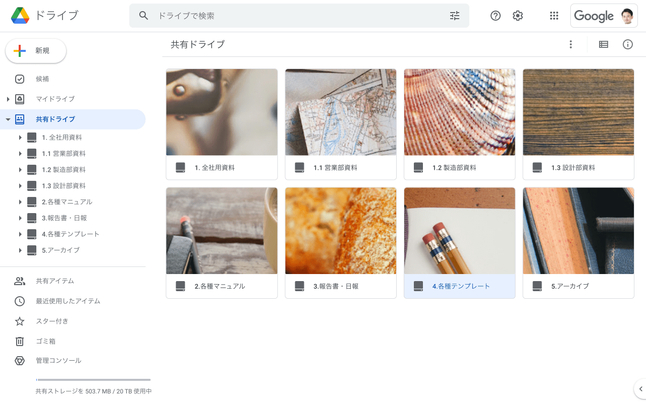 Business Starter プランの Google Workspace ストレージ容量は 1ユーザーあたり30GB、Business Standard プランは組織全体で 2TB × ユーザー数の容量が利用可能になります。